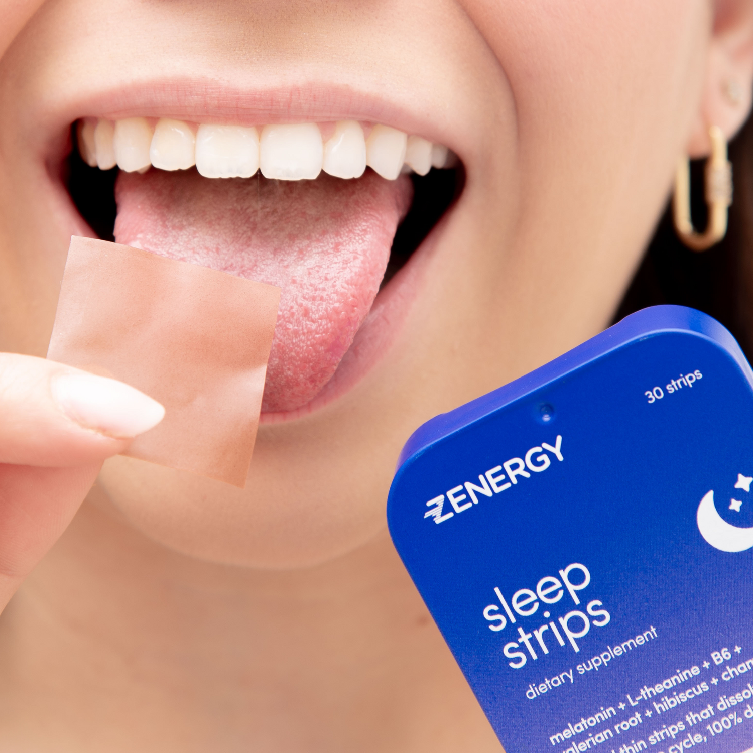 Coloca una tira de Sleep Strips en tu lengua y deja que se disuelva, absorviendo los ingredientes con mayor biodisponibilidad